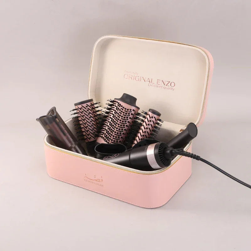 7 accesorios en 1: secador, alisador, rizador, cepillo y más en un solo kit
